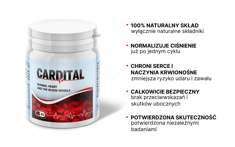 Cardital – kapsułki do normalizacji ciśnienia tętniczego, mikrokrążenia krwi oraz pracy układu sercowo-naczyniowego. Poprawiają ogólny stan organizmu, wspierają optymalizację tonusu naczyń krwionośnych i kapilar.